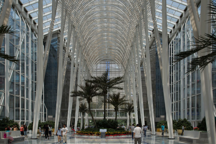 “SKY”空间的设计灵感,来自于欧洲的拱形建筑,主体采用树型钢架结构及全玻璃封闭,整体通透明亮,展示高科技新材料带来的新美学,巨大的树形钢架结构形成空前的“震撼空间”。